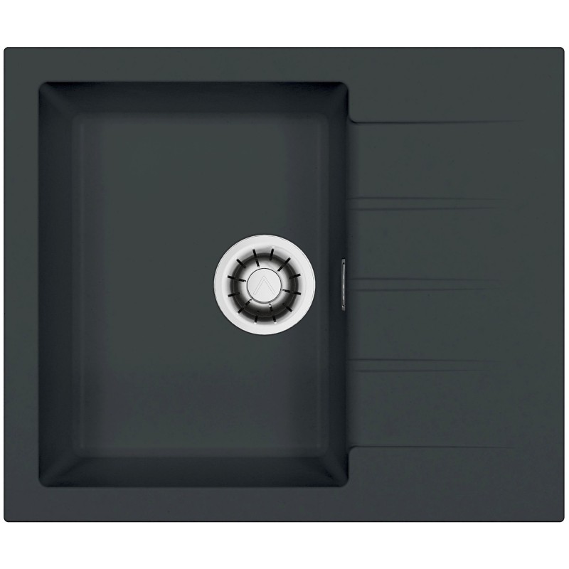 Granitový dřez s odkapem, provedení Deep Black A90, otočný, rozměr 590 x 500 mm, vana 325 x 425 x 200 mm, horní montáž, minimálně 45 cm skříňka, s excentrem, 2 otvory z výroby.