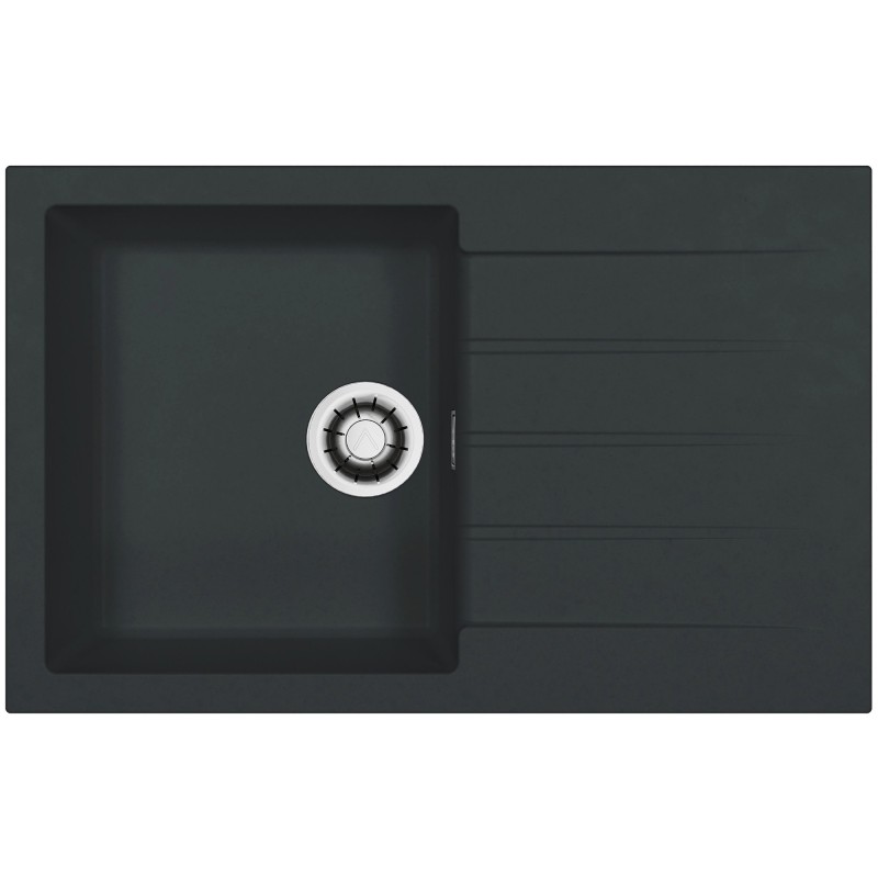 Granitový dřez s odkapem, provedení Deep Black A90, otočný, rozměr 790 x 500 mm, vana 375 x 425 x 200 mm, horní montáž, minimálně 50 cm skříňka.