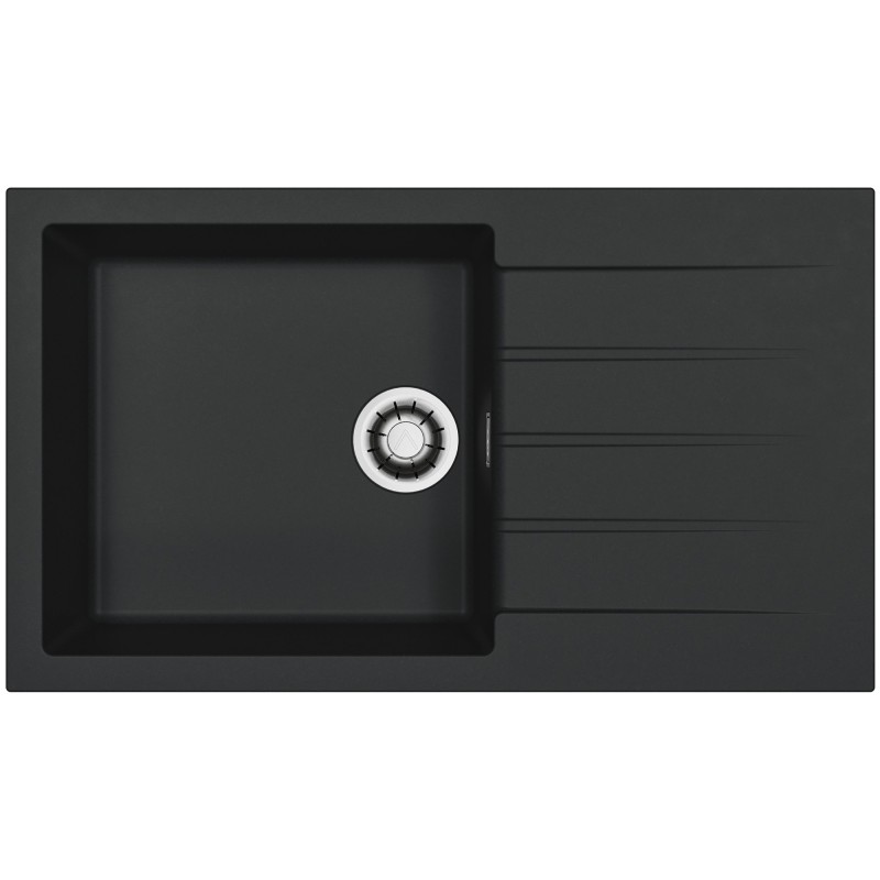 Granitový dřez s odkapem, provedení Deep Black A90, otočný, rozměr 860 x 500 mm, vana 445 x 425 x 200 mm, horní montáž, minimálně 60 cm skříňka.