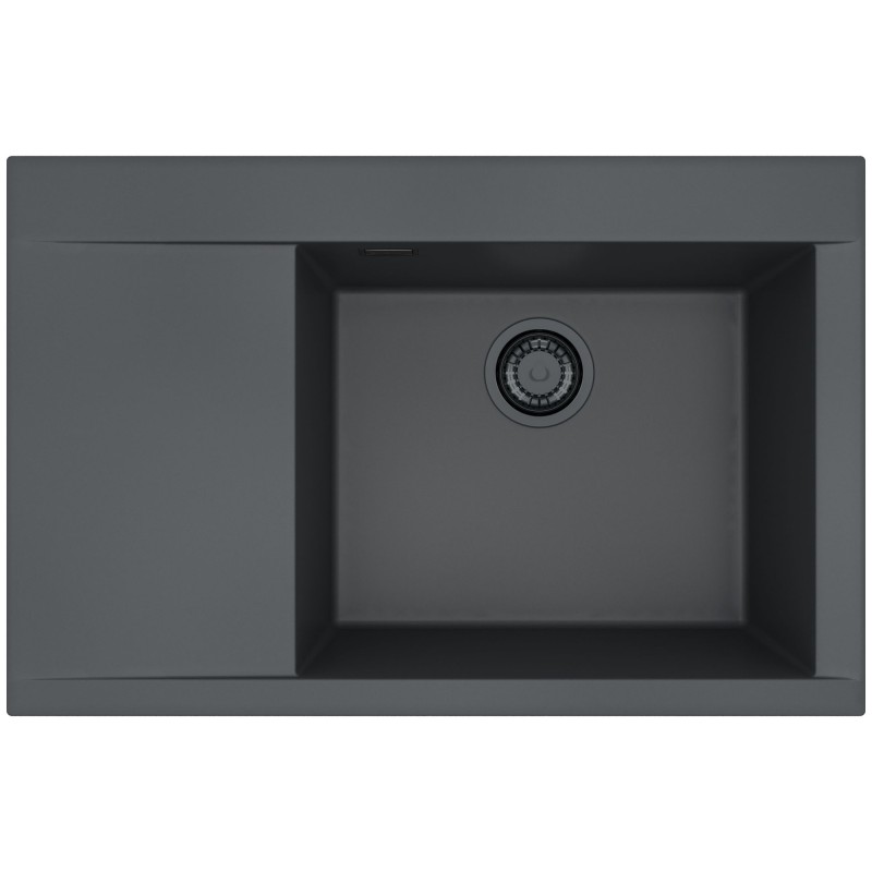 Granitový dřez s odkapem, provedení Deep Black A90 s černými komponenty, pravý, rozměr 790 x 515 mm, vana 480 x 400 x 198 mm, horní montáž, minimálně 60 cm skříňka.