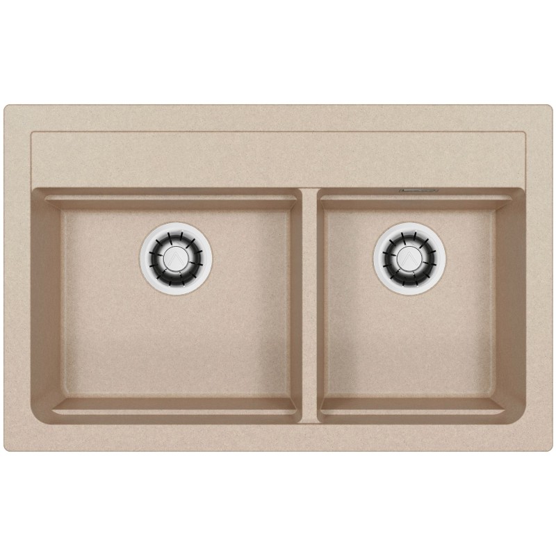 Granitový dvojdřez, provedení Ivory A20, rozměr 790 x 500 mm, vana 390 x 340 x 195 mm a 300 x 340 x 195 mm, horní nebo spodní montáž, minimálně 80 cm skříňka, s excentrem, 1 otvor z výroby.