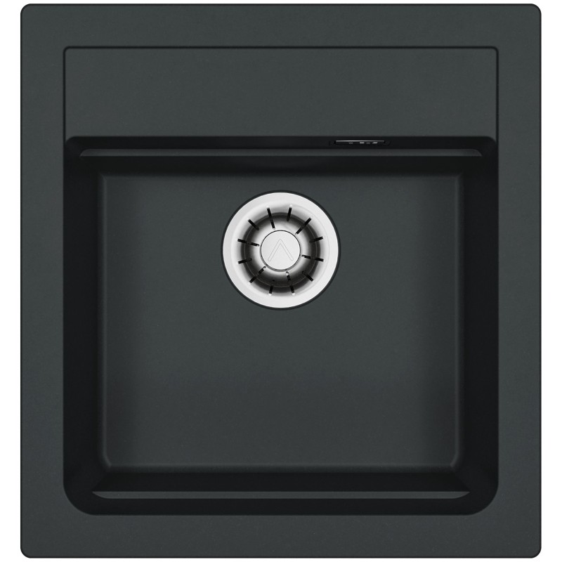 Hranatý granitový jednodřez, provedení Deep Black A90, rozměr 470 x 500 mm, vana 390 x 340 x 195 mm, horní nebo spodní montáž, minimálně 45 cm skříňka.