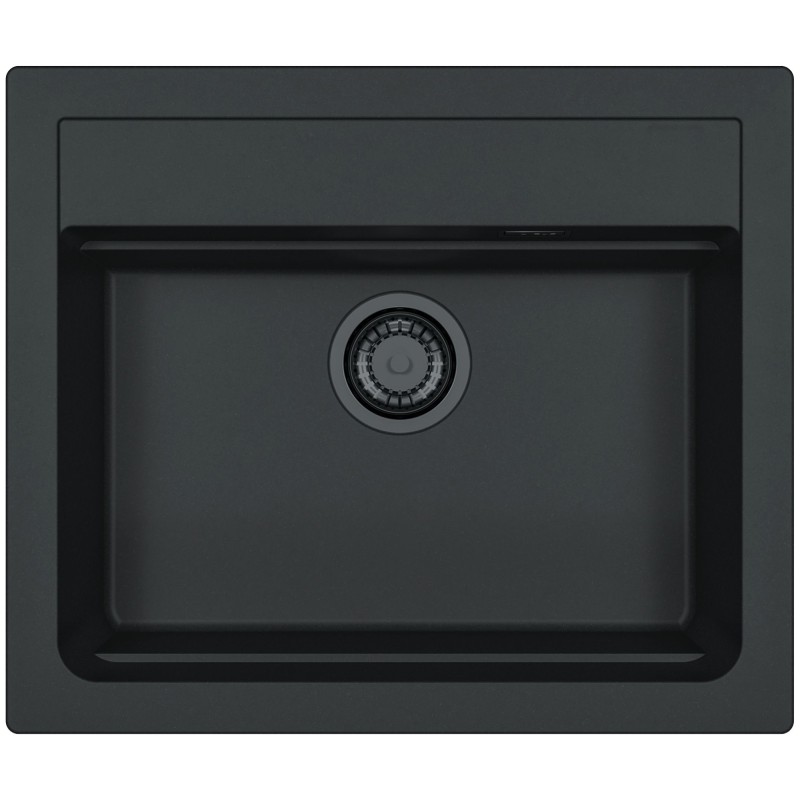 Hranatý granitový jednodřez, provedení Deep Black A90 s černými komponenty, rozměr 590 x 500 mm, vana 510 x 340 x 195 mm, horní nebo spodní montáž, minimálně 60 cm skříňka, s excentrem, 1 otvor z výroby.