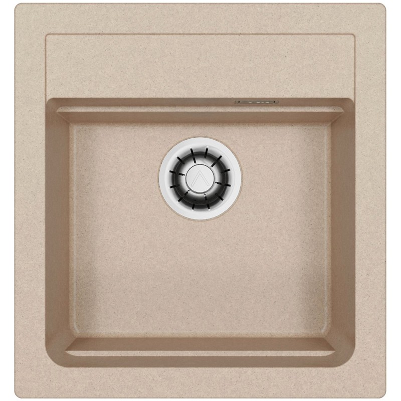 Hranatý granitový jednodřez, provedení Ivory A20, rozměr 470 x 500 mm, vana 390 x 340 x 195 mm, horní nebo spodní montáž, minimálně 45 cm skříňka, s excentrem, 1 otvor z výroby.