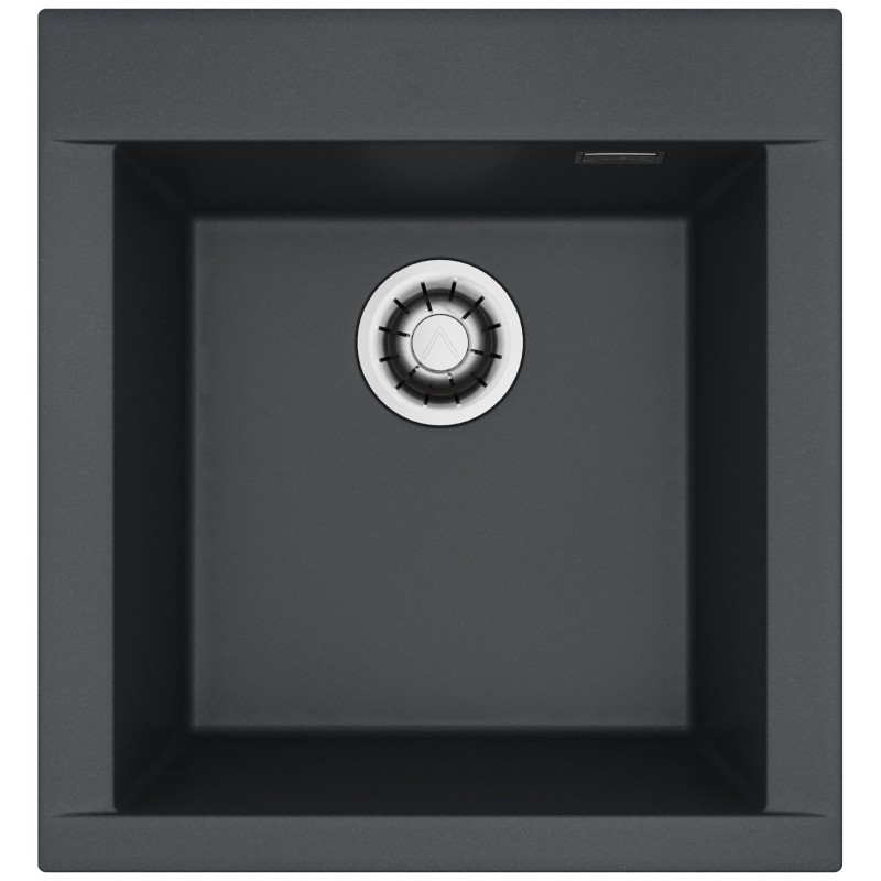 Hranatý granitový jednodřez, provedení Deep Black A90, rozměr 480 x 515 mm, vana 390 x 400 x 198 mm, horní montáž, minimálně 45 cm skříňka.